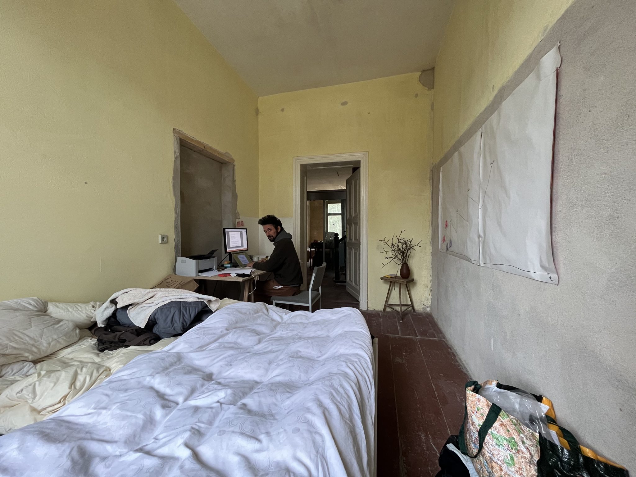 Was: Das Haus bietet eine Mischung aus rougher Ästhetik und sinnvollem Pragmatismus – nachhaltig umgesetzt. Die meisten Räume sind groß und offen – es gibt zwei Einzel- oder Doppelzimmer und im Sommer zusätzlich 5 Nano-Apartments. Ausgestattet mit einer immensen Küche mit Holz- und Gasherd, einem großen Tisch zum Essen und Arbeiten, einem Kaminzimmer mit einem fetten Ofen. Drei Bädern und 20 Betten im Haus und 6 im Schuppen. Um das Haus gibt’s eine riesige Wiese und alte Bäume spenden Schatten.